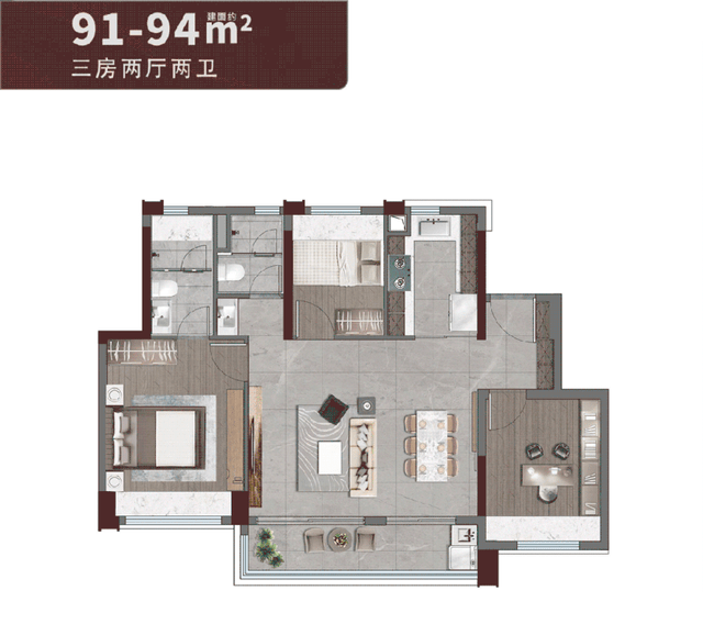 详细看户型,项目建面约92-108㎡3至4房,皆为立异大横厅规划,延伸出更多日子可能性,营建大平层般的通透空间感。